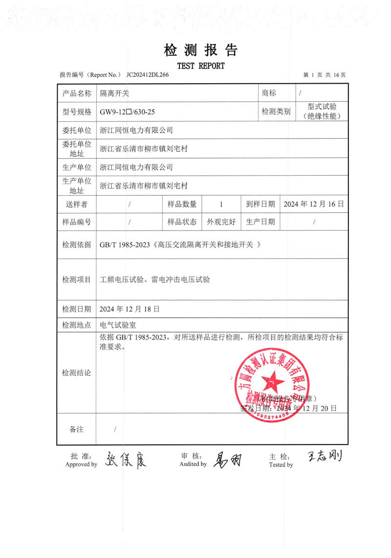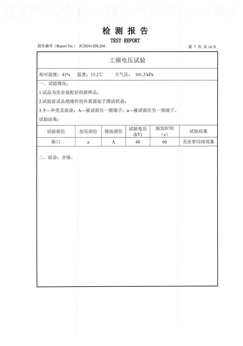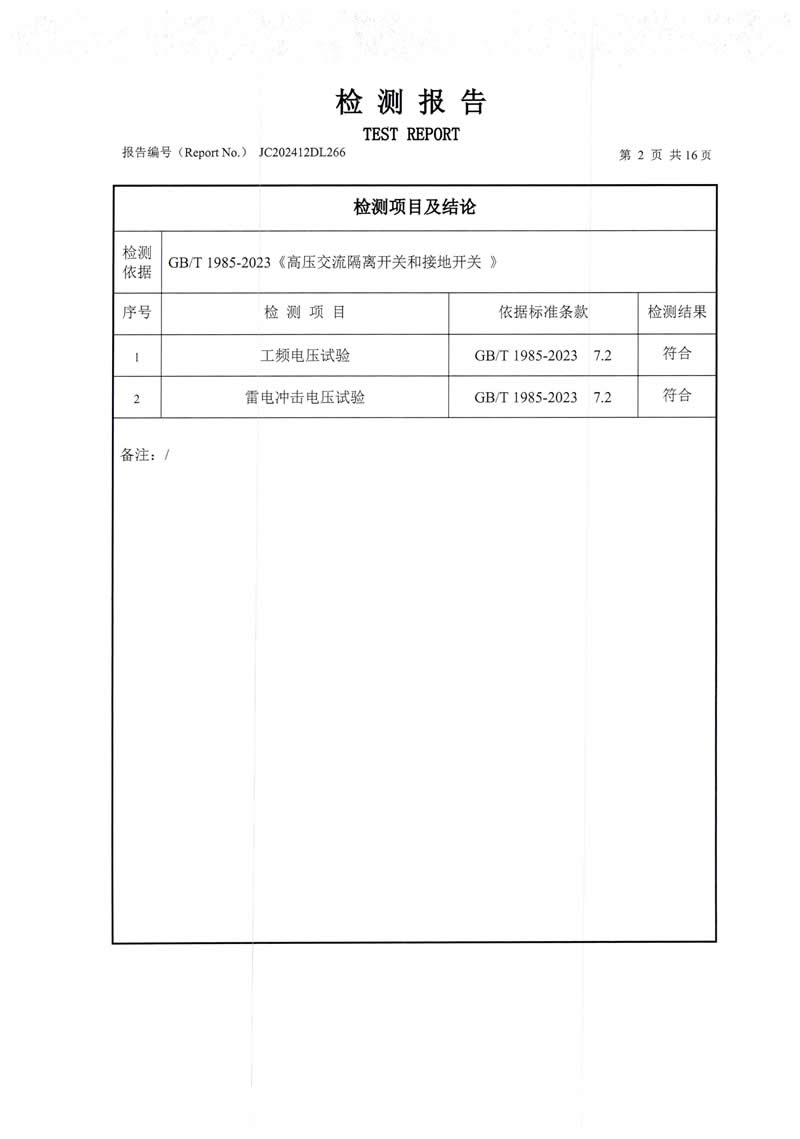 隔離開關(guān)檢測報告